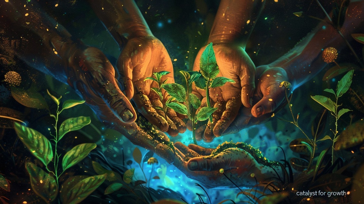 Создано на основе запроса: symbol, Dad's hands supporting five pairs of younger hands of varying sizes nurturing seedlings transforming into diverse elements - growing children, developing organizations, blossoming art, "catalyst for growth" visual metaphor, vibrant green, blue and gold palette, legacy symbolism, exploration elements, intentional living patterns, detailed hands and transformative elements, dramatic lighting, 4k --- Автоперевод: Символ, руки папы, поддерживающие пять пар молодых рук различных размеров, воспитывающих саженцев, превращающихся в разнообразные элементы - растущие дети, развивающиеся организации, цветущее искусство, «катализатор роста» визуальная метафора, яркая зеленая, синяя и золотая палитра, символические символики, элементы исследования, намеренные живые схемы, подробные руки и трансформирующие элементы, драматические, 4К, 4К. Какое твое мнение? 🤔 https://dzen.ru/id/65c0c65c86e4f837c27b24d7 #ИИ #AI #нейросеть #midjourney #art