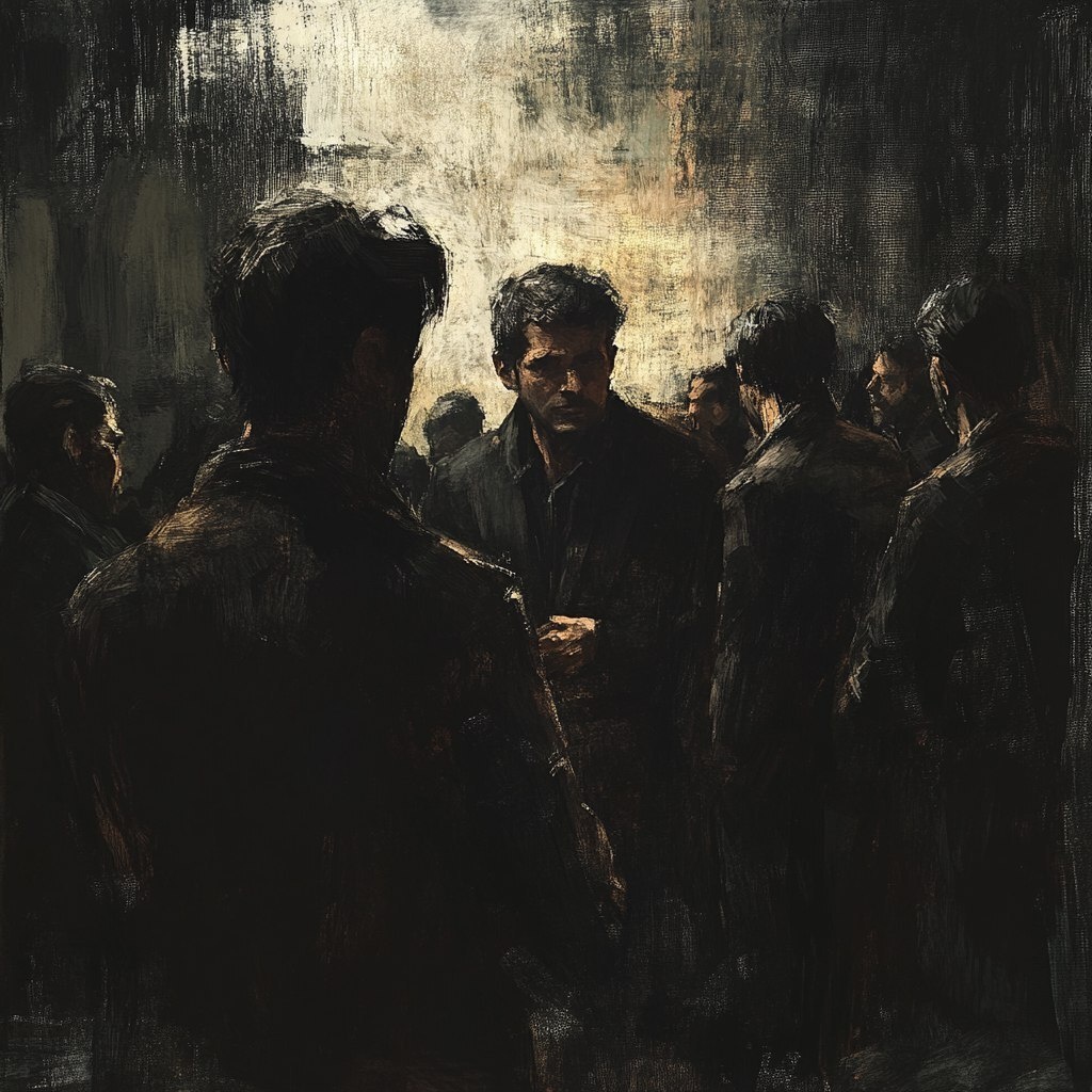 Создано на основе запроса: man character age 30, speaking with a lot of people , high qulity , Alvaro Castagnet style picture , sketch , dark colors --- Автоперевод: Человек -персонаж в возрасте 30 лет, разговаривая со многими людьми, высоким Qulity, изображение в стиле Альваро Кастагнет, эскиз, темные цвета Красиво получилось? 🤔 https://dzen.ru/id/65c0c65c86e4f837c27b24d7 #ИИ #AI #нейросеть #midjourney #art