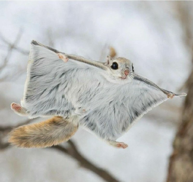 🐿 Африканская белка-летяга — живой планер. На первый взгляд — просто белочка. Но не тут-то было. Она может парить до 90 метров, используя кожную перепонку между лапками. И делает это с грацией летучей мыши, но с лицом: "Я — самолёт, дорогуша." Живёт в лесах Африки, ведёт ночной образ жизни, и её глаза — это как два прожектора в темноте. Видит всё. Даже то, что ты сам про себя забыл. Питается в основном растительностью, но при случае может перехватить что-то мясное. Летит с дерева на дерево без единого звука, как ниндзя, только пушистый. И ещё — у неё шикарный хвост. Реально шикарный. Как у модели на показе мехов. Африканская белка-летяга — ночной планер, шпион и пушистый фанат паркура.