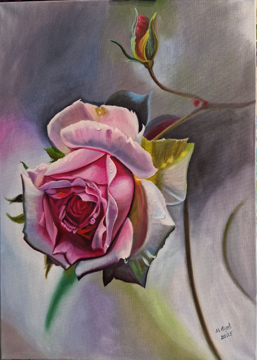 "Роза" масло, холст на подрамнике 50х70. Люблю розы. А розы с капельками росы- это очень красиво!!! Капельки как бриллианты сверкают на нежных лепестках украшая, этот и так очень красивый цветок, ещё больше. #роза #роса #картина #картинавподарок #Сургут #украсьсвойдом