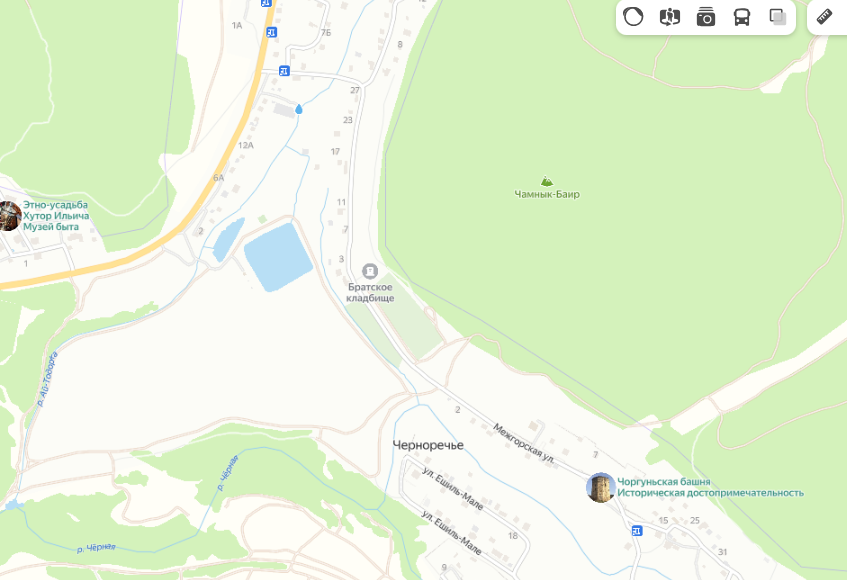 В этой статье побываем на братском кладбище, которое находится в селе Черноречье. Статья написана автором канала на Дзен «Прогулки по Севастополю». Копирование и использование материалов без согласования с автором запрещены. Находится братское кладбище в селе Черноречье. На карте видно остановки общественного транспорта: Сюда ходят 2 автобуса: №40 (с 5км Балаклавского шоссе) и №129 (из Балаклавы). Выйти можно на любой остановке: либо на конечной (в правом нижнем углу), либо на остановке «Поворот на Черноречье» (сверху). По карте видно, что расстояние от любой остановки будет примерно одинаковым. Братское кладбище находится рядом с дорогой и обычным сельским кладбищем, найти его легко. К братскому кладбищу ведёт эта лестница: Поднимаемся по ступенькам наверх: Видно, что всё заросло травой, но пакеты говорят о том, что здесь начали наводить порядок: Справа от братского кладбища находится обычное и надо отметить, что со стороны оно выглядело очень ухоженным, были люди, которые нав