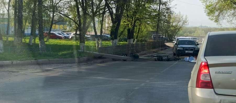 В Курске упавший на дорогу столб затруднил движение транспорта