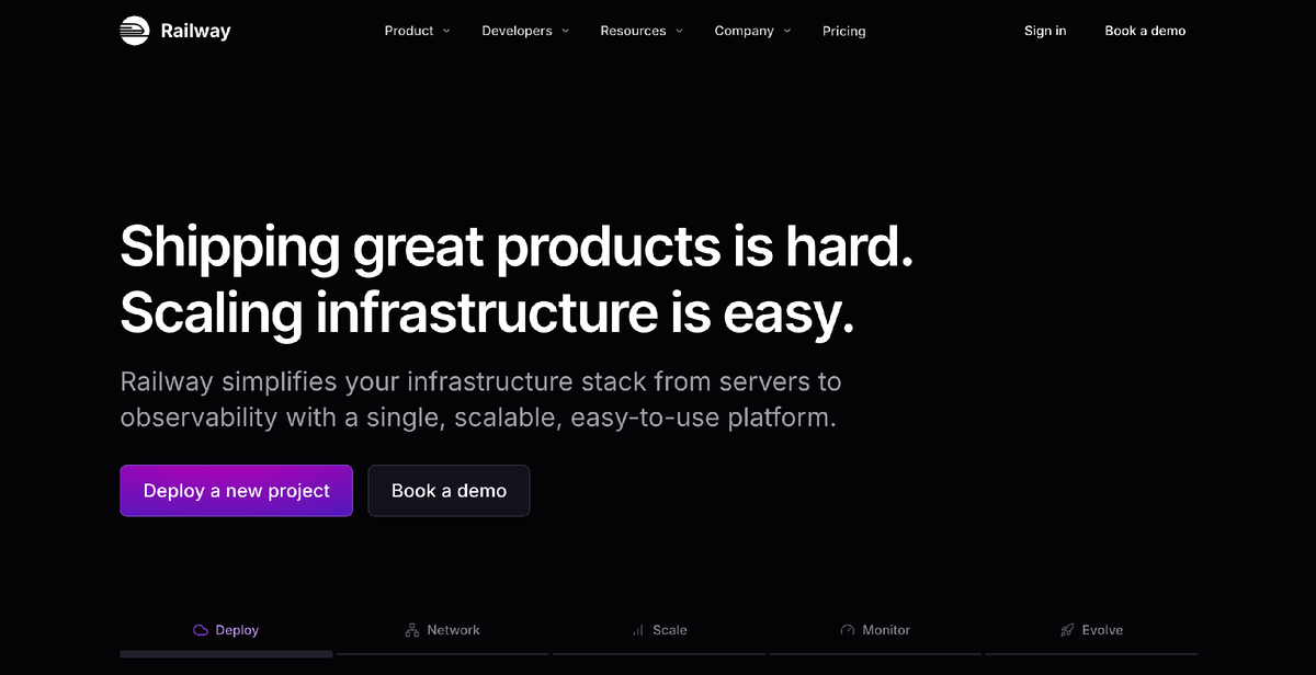 Railway — это облачная платформа для разработки, которая автоматизирует инфраструктуру и упрощает процесс деплоя приложений. Сервис позволяет разработчикам фокусироваться на коде, а не на настройке серверов. Railway автоматически определяет тип вашего проекта, настраивает необходимую инфраструктуру и предоставляет инструменты для мониторинга и масштабирования.