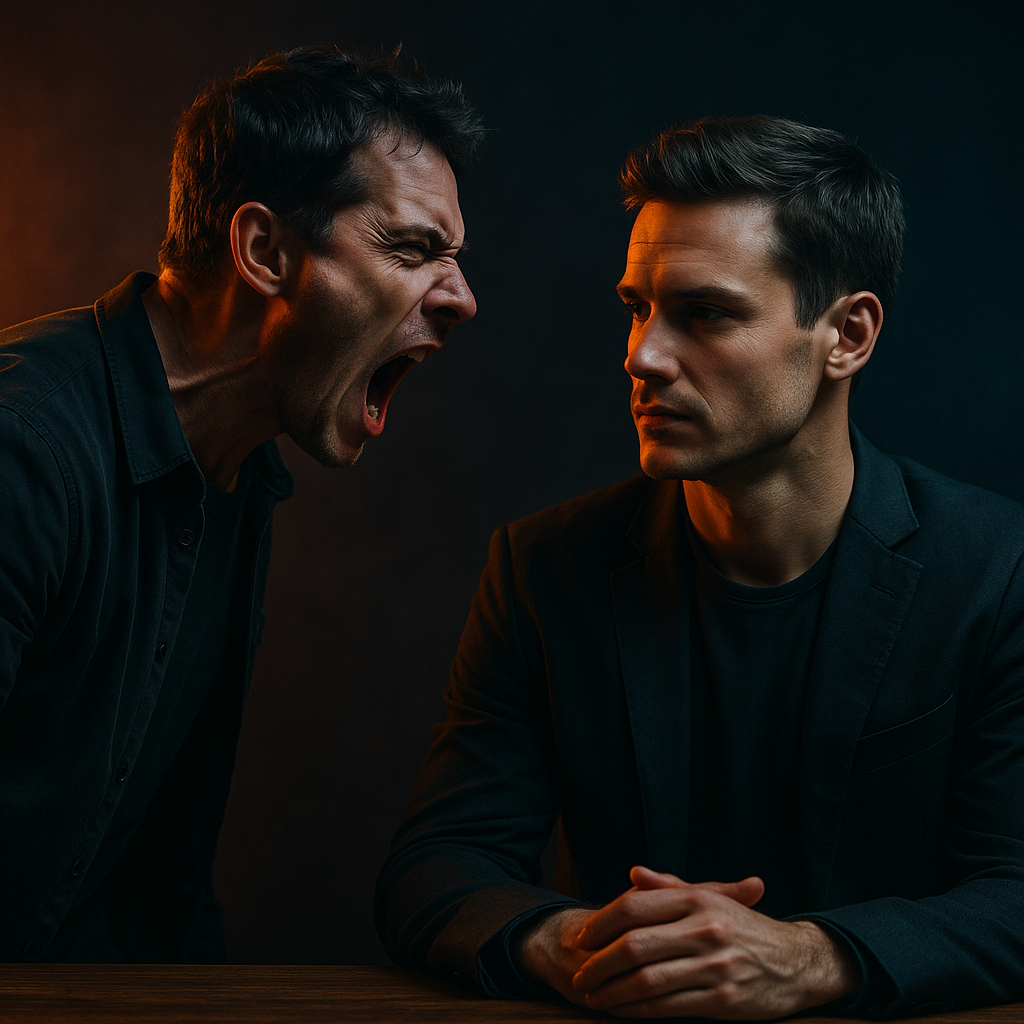 Главное — не кипятиться. Ты не кричишь, не брызжешь слюной. Ты холоден, точен, опасен. Представь, что ты хищник, который не бегает за добычей — ты просто смотришь. Этого уже достаточно. 🩸 2. Минимум слов — максимум удара