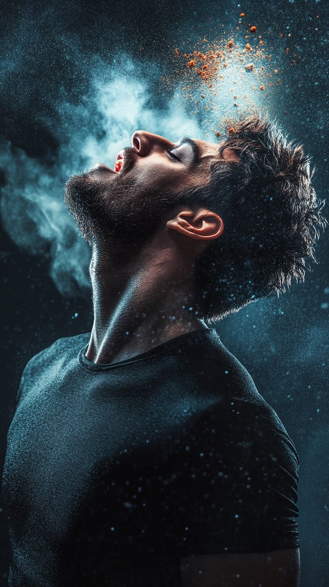 Создано на основе запроса: show a guy taking shilajit gummies and is strong and feeling powerful with effects on the background and on him