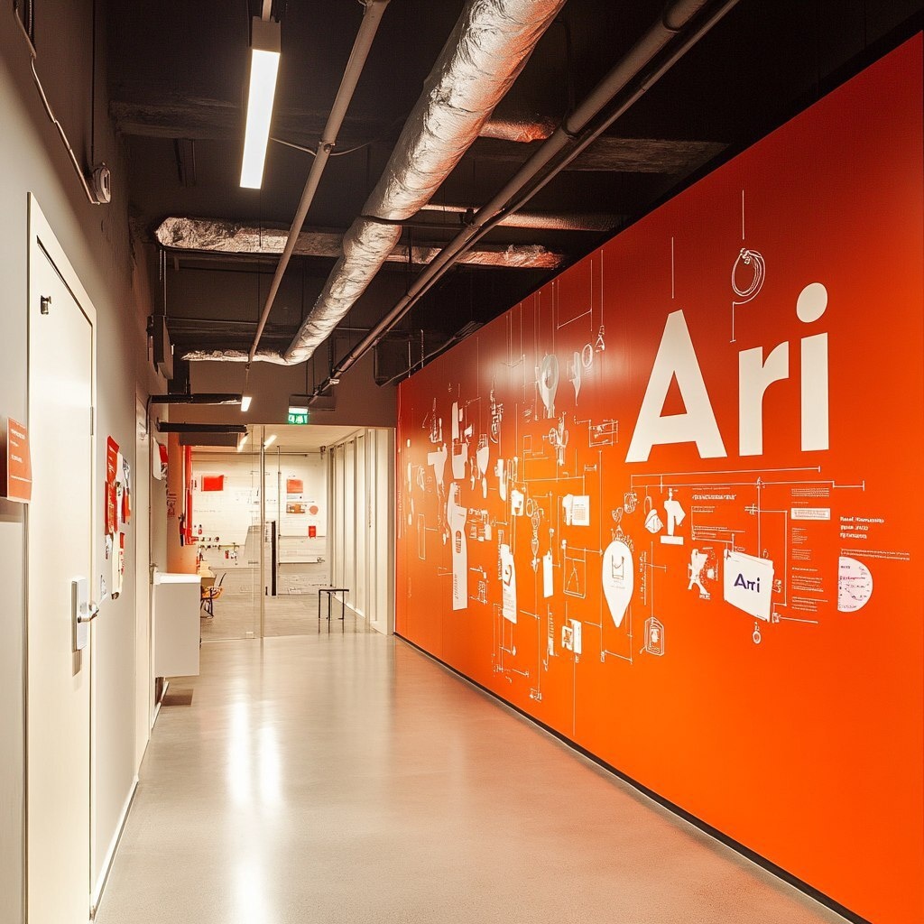 Создано на основе запроса: Technological infographics about a company called "Ari" that can be displayed on office as graphic walls
