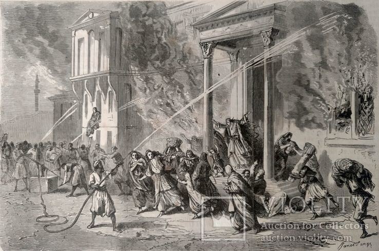 Огонь вспыхнул в плотно застроенных деревянных кварталах города во время сильного ветра, что способствовало его стремительному распространению. Пламя бушевало несколько дней, уничтожив значительную часть жилых районов и множество важных общественных зданий. Особенно пострадали кварталы, где проживали христиане и евреи.