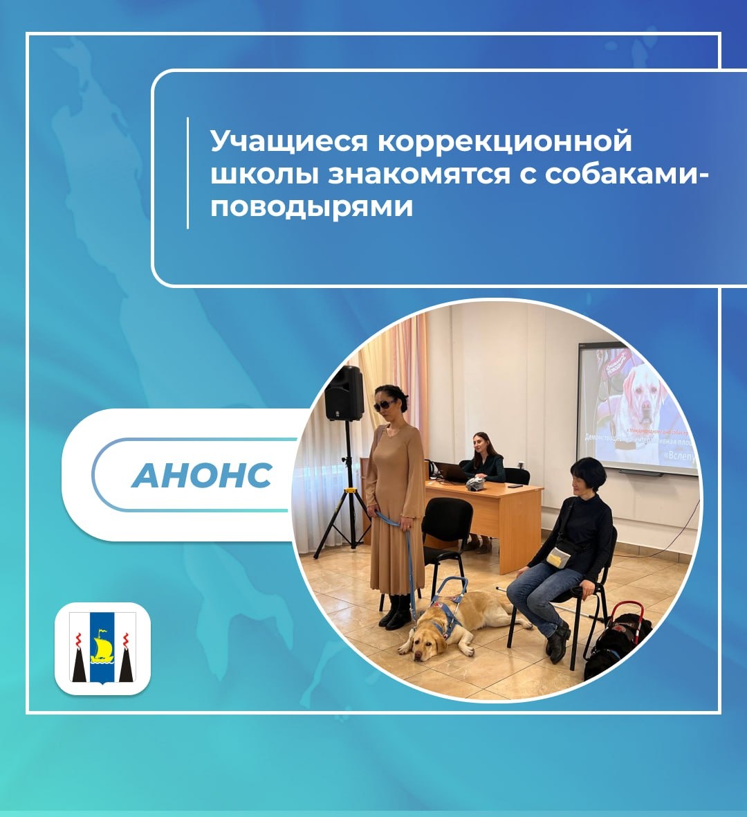 🗾 Прямо сейчас в Сахалинском областной реабилитационном центре проходит встреча слепых и слабовидящих детей из школы «Надежда» с собаками-проводниками и их хозяйками. 🗓 Мероприятие-знакомство организовано в рамках подготовки к Международному дню собак-поводырей, который отмечается в последнюю среду апреля. Дети смогут узнать какие команды способны выполнять собаки-поводыри, а также лично познакомиться с четвероногими помощниками и задать вопросы их владельцам. 🐕 📢 Следите за нашими новостями, чтобы быть в курсе всех событий. #сахалин #сахалинскаяобласть #событиедня