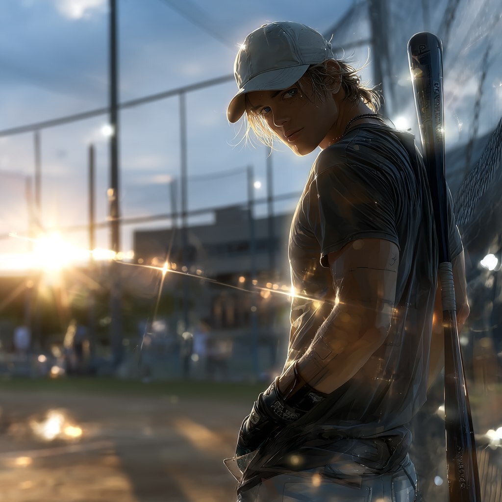 Создано на основе запроса: a college male with dirty dark blond hair mop hair style with a tight fade wearing a backwards white cap hazel and blue eyes aesthetic muscles, swinging a baseball bat standing on home plate hitting a home run smirking --- Автоперевод: Мужчина из колледжа с грязной темной светлой волос с волосами с жесткой выцветанием в эстетических мышцах с белой шапкой и голубыми глазами, размахивая бейсбольной битой, стоящей на домашней тарелке, ударяя по ухмылке хоумрана Как тебе такой вариант? 🤔 https://dzen.ru/id/65c0c65c86e4f837c27b24d7 #ИИ #AI #нейросеть #midjourney #art