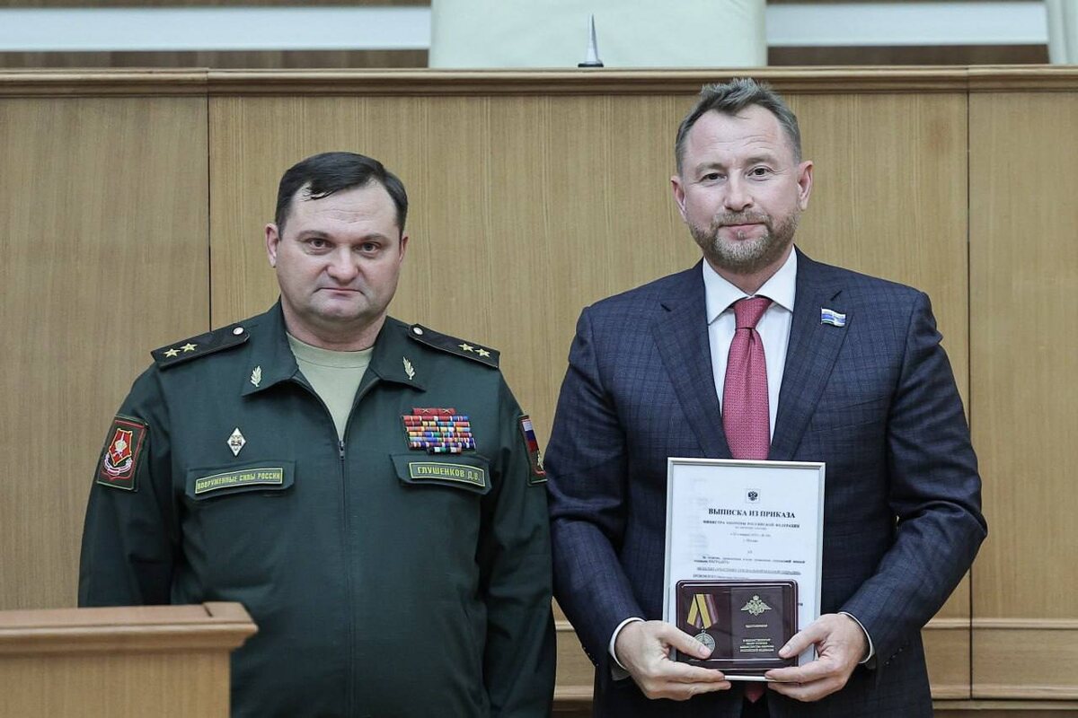 Депутат Брозовский награжден медалью участника СВО Министр обороны Андрей Белоусов наградил депутата Законодательного собрания Свердловской области Вячеслава Брозовского медалью участника специальной военной операции. Эта награда стала признанием его вклада в поддержку российских военнослужащих. За время СВО Брозовский совершил 20 поездок в прифронтовую зону, проведя там в общей сложности 118 дней, передает телеграм-канал «Погоны и галстуки». Брозовский стал третьим депутатом ЗакСо, награжденным этой медалью, после Исакова и Вегнера. Фото: Погоны и галстуки @zg66