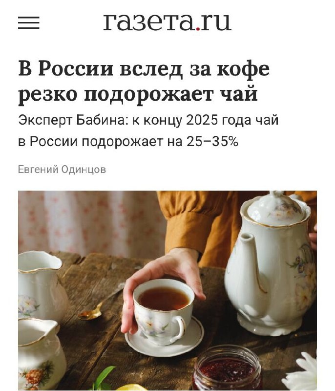 🫖 Чай в России подорожает на 35% уже к концу этого года, прогнозируют в Last Wish.