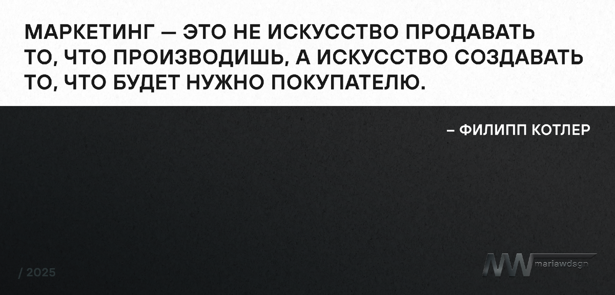 Маркетинг — это не искусство продавать то, что производишь, а искусство создавать то, что будет нужно покупателю. — Филипп Котлер Эта цитата, возможно, самая важная для каждого предпринимателя. Что она на самом деле означает для вашего бизнеса? Она говорит о том, что вам нужно не только продать то, что у вас есть, но и создать продукт или услугу, которые действительно решают проблемы вашего клиента. Когда я разрабатываю сайт, я не просто делаю его "красивым". Я строю его так, чтобы он отражал потребности вашей целевой аудитории и помогал удовлетворить их запросы. Для вашего бизнеса это значит: ❗️Понимание, что важно для клиента. Я изучаю вашу целевую аудиторию и её потребности, чтобы сайт не только выглядел привлекательно, но и предлагал решения для ваших клиентов. ❗️Сайт, который работает на результат. Не просто информирует, а провоцирует действия: заявку, покупку, подписку. Он становится частью вашего маркетинга и помогает вам строить долгосрочные отношения с клиентами. ❗️Структура