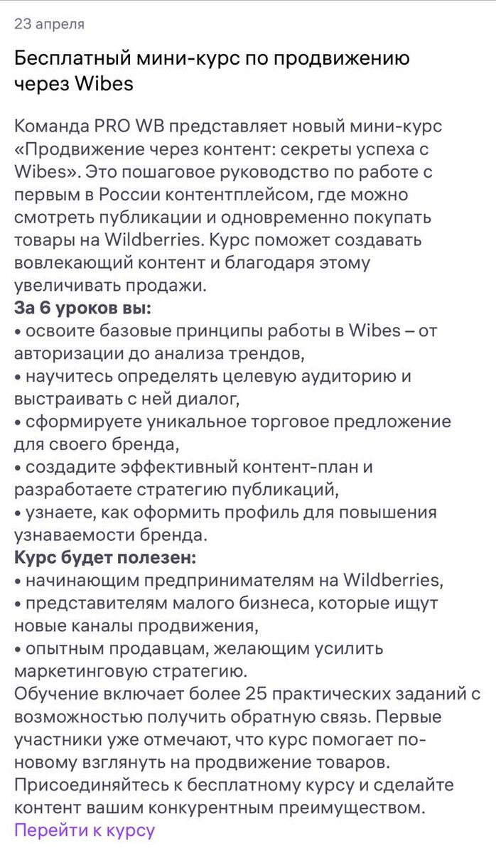 ⚡ ВБ сделал курс по продвижению в Wibes А разве не просто крутанул лайками и все? Вот ссылка на ветку взаимолайка, кстати https://t.me/infopoles/365310