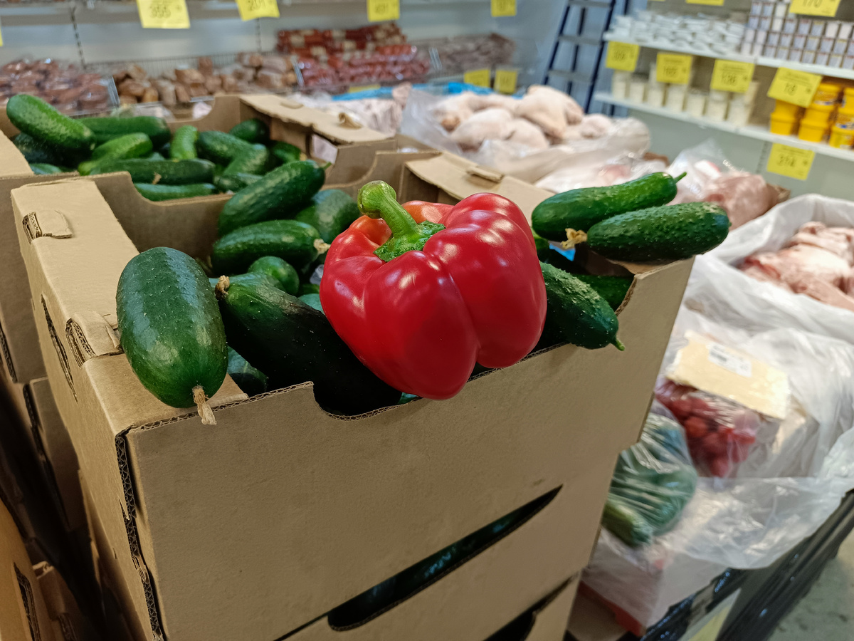 Красные помидоры из местных теплиц разлетаются моментально. Стоимость — 140 рублей за килограмм.