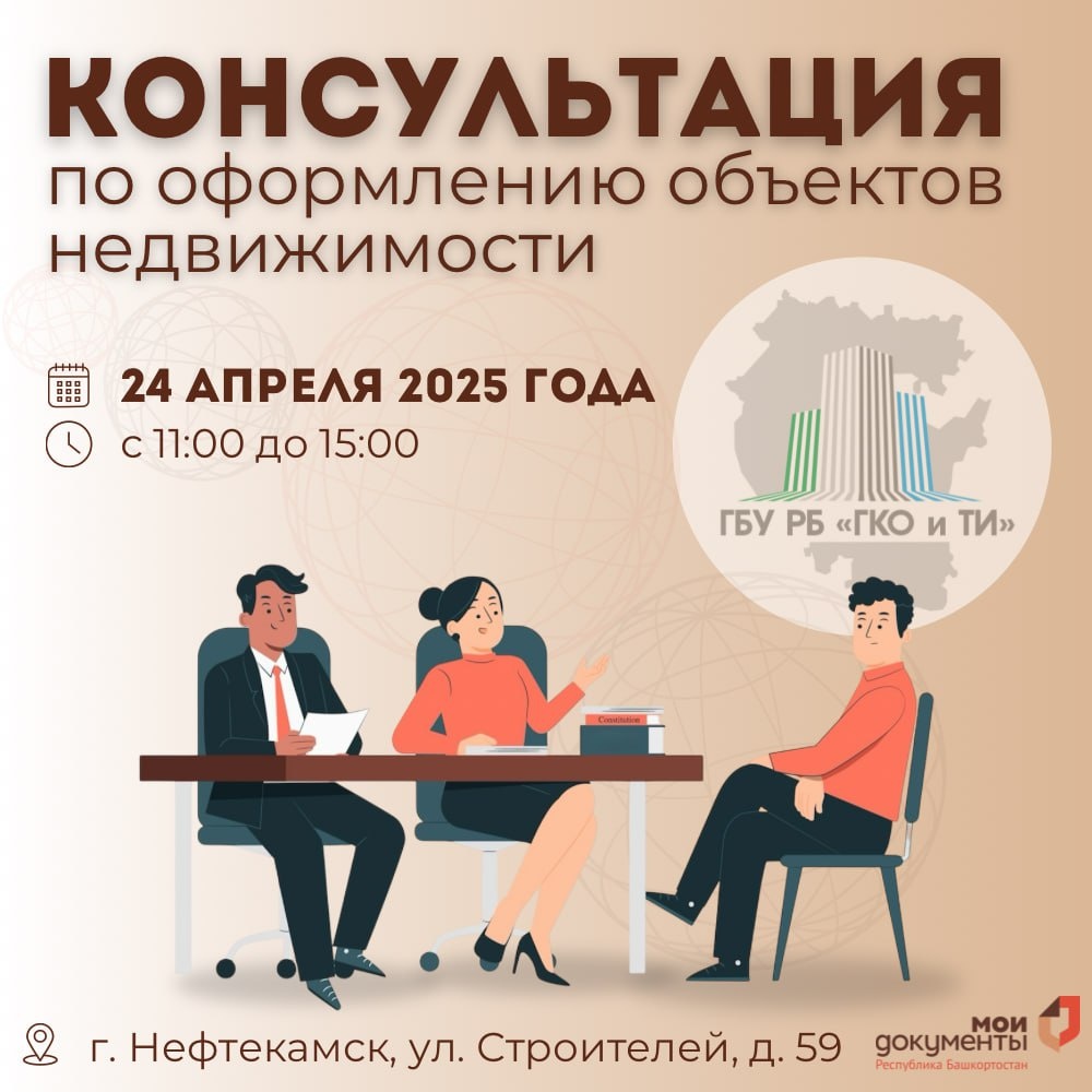 🏠 Бесплатные консультации по оформлению недвижимости ⚡️ 24 апреля в офисе МФЦ г. Нефтекамск с 11:00 до 15:00 часов пройдут бесплатные консультации от специалистов ГБУ РБ «Государственная кадастровая оценка и техническая инвентаризация». Узнайте все тонкости оформления недвижимости! ⚡️⚡️ Встречаемся по адресу: ул. Строителей, 59