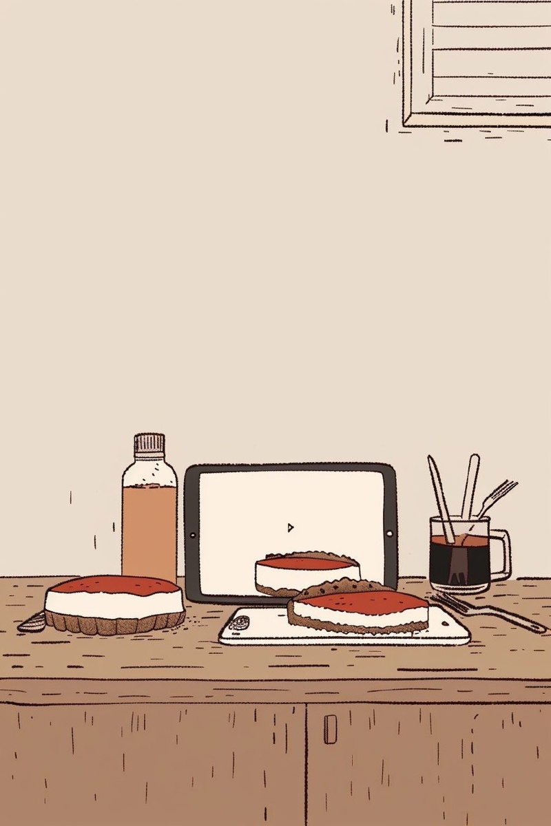 Создано на основе запроса: illustration of four pie slices, forks and an ipad standing on the table