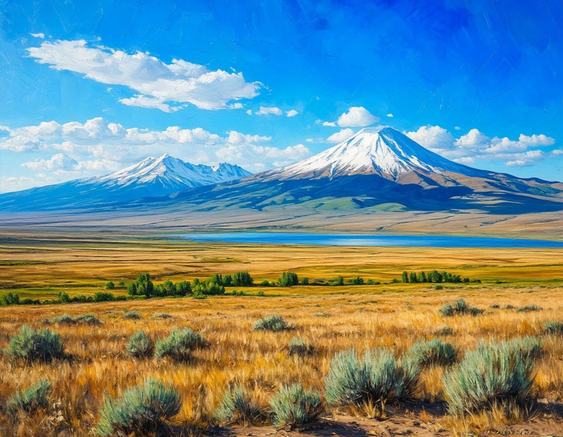 «В небе опять висел белый Арарат, а в противоположном краю неба — менее эффектный многоголовый белый Арагац, синим абрисом снизу касаясь