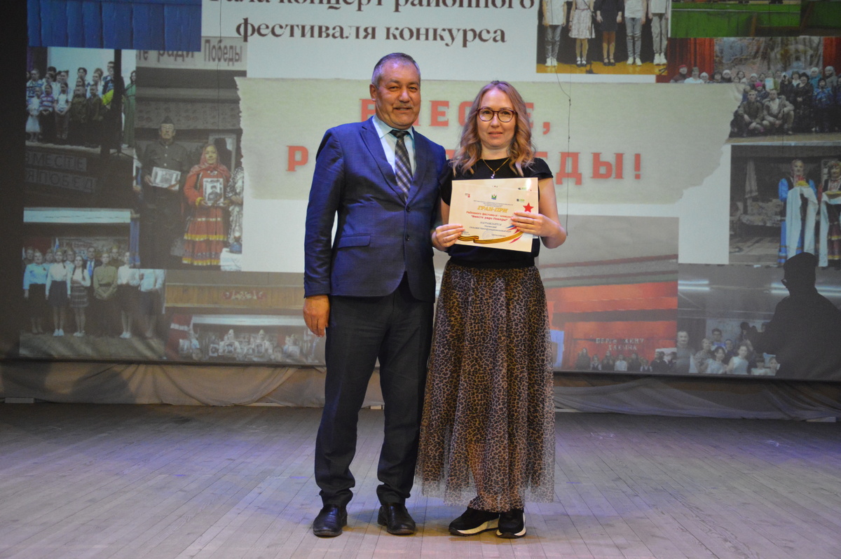 Районный фестиваль-конкурс среди сельских клубных учреждений «Вместе ради Победы» завершился большим, невероятно красочным Гала-концертом, соединившим культурные традиции разных народов. Он представлял собой сочетание музыкальных номеров и театрализованных сцен. Каждое выступление было пронизано духом патриотизма, гордости за страну и уважением к памяти героев. В смотре участвовали 38 сельских культурно-досуговых учреждений. Но, как и полагается, в финал вышли самые лучшие. На сцене РДК в этот день выступили победители, которые показали лишь небольшую часть концертных программ, которые они ранее представили на суд жюри. Вокальные ансамбли и сольные исполнители сумели в полной мере отразить всю самобытность своих народов. Открыли вечер сводные вокальные ансамбли Караярского СМФК, Багазинского и Абдуллинского СК и солистка Юлия Айгишева. После грандиозного номера на сцену вышел директор РДК Мирза Хусаинов, который наградил призеров конкурса. Победу в номинациях конкурса одержали: «За луч