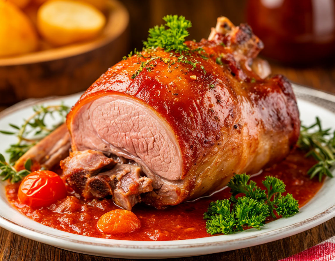 Запеченная свиная рулька – это сытное и вкусное блюдо, которое прекрасно подходит для праздничного стола или семейного ужина. Хрустящая корочка, нежное мясо и ароматные специи делают это блюдо настоящим деликатесом. ❇️ Ингредиенты: - Свиная рулька – 1,5-2 кг - Чеснок – 5-6 зубчиков - Лук – 2-3 штуки - Морковь – 1-2 штуки - Специи: соль, черный перец, паприка, тимьян (по вкусу) - Вода – 1-2 литра (для запекания) - Горчица (по желанию) – 2 ст. ложки - Растительное масло – 2 ст. ложки ❇️ Подготовка: 1. Подготовка рульки: - Хорошо промойте свиную рульку под холодной водой, удалите остатки волосков и пленок. - Сделайте глубокие надрезы на коже, чтобы специи лучше впитались и образовалась хрустящая корочка. 2. Маринад: - В небольшой миске смешайте соль, черный перец, паприку и тимьян. - Чеснок нарежьте мелко или пропустите через пресс. - Втирайте специи и чеснок в мясо, уделяя особое внимание надрезам. Если хотите, можете также намазать рульку горчицей для дополнительного аромата. - Оставьте
