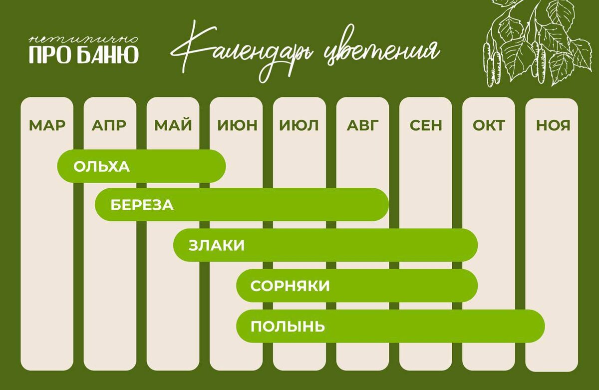 ВНИМАНИЕ, ПЫЛЬЦА Ни для кого не секрет, что в бане красиво и ароматно раскрываются свежие растения: травы, цветы, веники. Но, помимо красоты, там могут быть скрыты негативные моменты — аллергены. Особенно сейчас не стоит нести все подряд в баню. Поллиноз, или аллергия на цветение, — проявляется острым аллергическим воспалением слизистых поверхностей, органов зрения и кожного покрова. Принимая баню в весенний период, рекомендую избегать использования свежих растений/трав. Тщательно принимайте душ перед заходом в парную, хорошо очищая нос, промывая глаза и волосы, смывая пыльцу. Здесь можно найти прекрасные рекомендации для аллергиков. А у вас есть поллиноз? Как справляетесь? 🌟Нетипично про баню | ПОДПИСАТЬСЯ