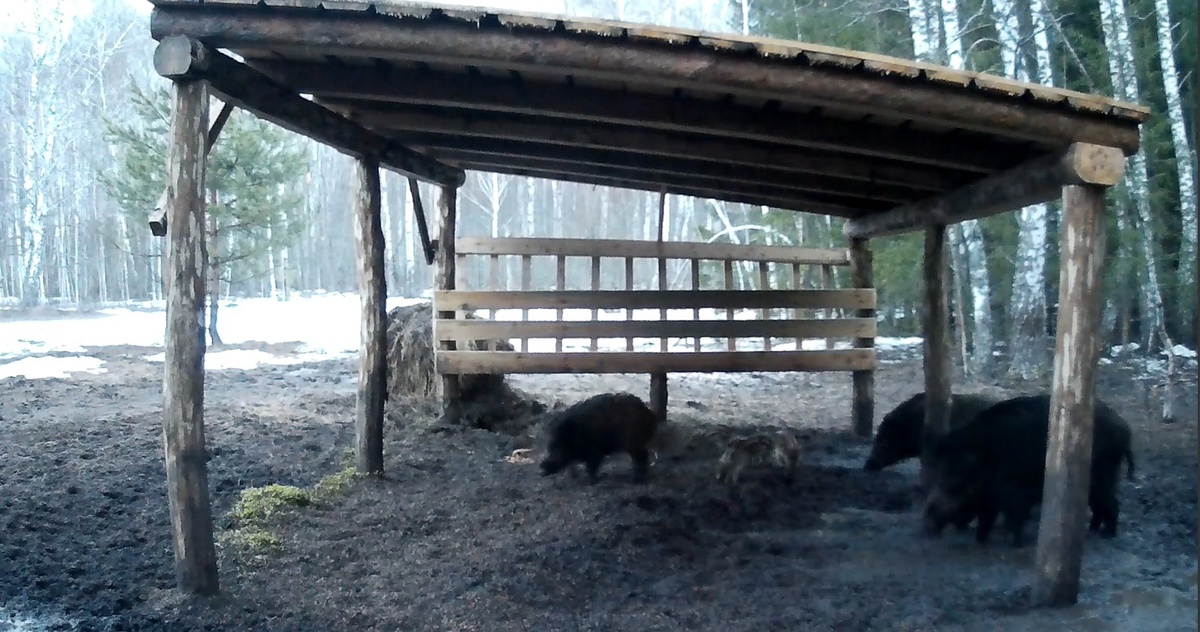 В Башкирии в фотоловушку попала семья кабанов с крошечными поросятами
