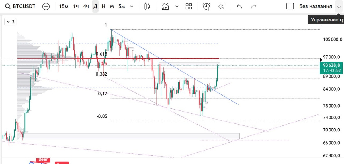 Пока мы не пробьём 96 000 и там не закрепимся, это всего лишь хороший отскок. Локально всё равно шорт. Там и буду присматривать позицию. Это может быть, всего лишь сбор ликвидности❗️ Мы уже находимся в шортовой зоне (как и по многим монетам). Но объёмы и импульсы сильные, поэтому вполне допускаю еще поход вверх. Есть дивергенция на часе и 15 мин, дошли до верхних полос Боллинджера, так же находимся в ордер блоке. Всё говорит о шорте. Но не спешу