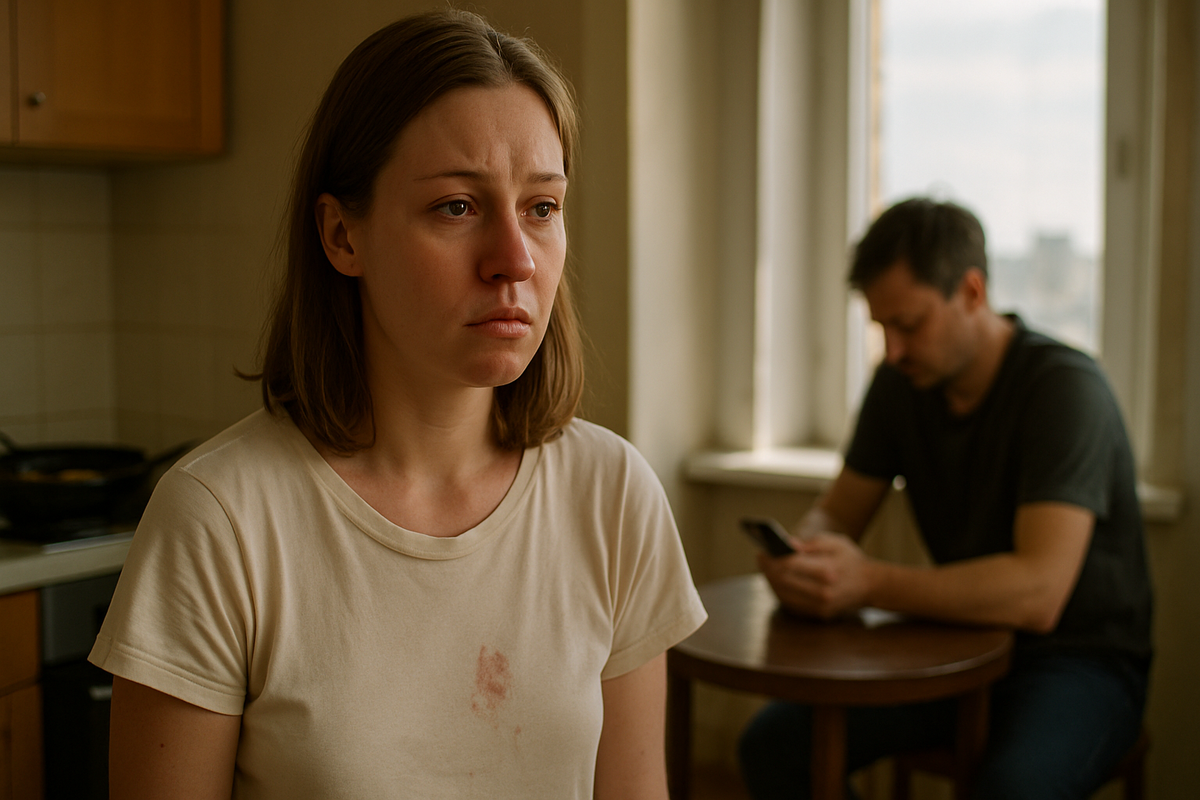 Даша стояла в дверях кухни босиком, в футболке с пятном от клубничного йогурта. На плите шипела картошка, в раковине валялись ножи. Олег застыл у окна с телефоном в руке. На экране всё ещё мигало: «Марина — ❤️».
