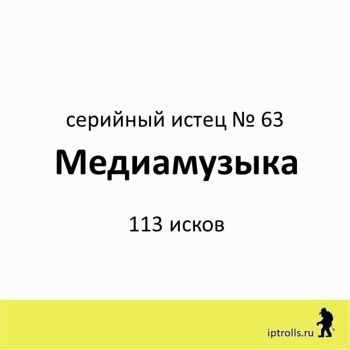 Мы собрали информацию о правообладателях, массово подающих претензии и иски в защиту авторских прав и прав на товарные знаки, а также полезные материалы и рекомендации, чтобы вы могли: Сейчас в базе более 60 серийных истцов. Вы можете проверить, не нарушаете ли вы чьи-то интеллектуальные права в рамках своего бизнеса или проекта, получить ответы на популярные вопросы и проконсультироваться. Правообладатель Медиамузыка внесен в базу IPTrolls под № 63. Переходи в карточку правообладателя на сайте IPTrolls, чтобы узнать больше. Если вы не нашли ответ на свой вопрос, посмотрите другие материалы проекта или напишите нам через форму на сайте. _____________________ команда проекта IPTrolls 🕵🏻♂️Следите за обновлением базы