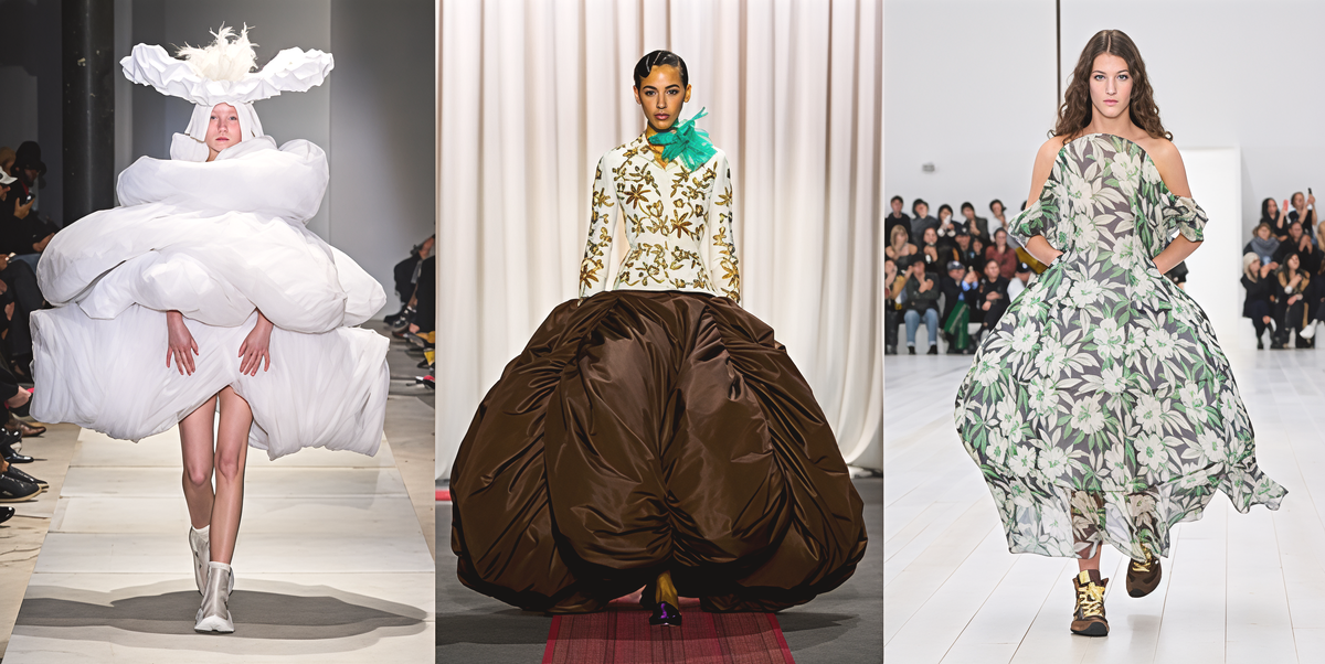 На подиумах в этом сезоне царят невероятно пышные, объёмные силуэты, напоминающие облака. Огромные конструкции, кринолины, драпировки... Красиво? Возможно. Удобно? Вряд ли!