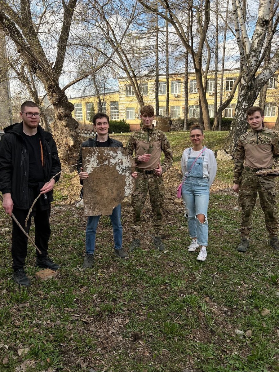 Зеленая неделя 🌳 Продолжаем тему субботников - прибраться на территории студенческого городка вышли студсоветы институтов, молодежный добровольческий центр "Лес рук", профком студентов и объединение "Движение первых" 👍🏻 Впереди у студентов ещё много работы.