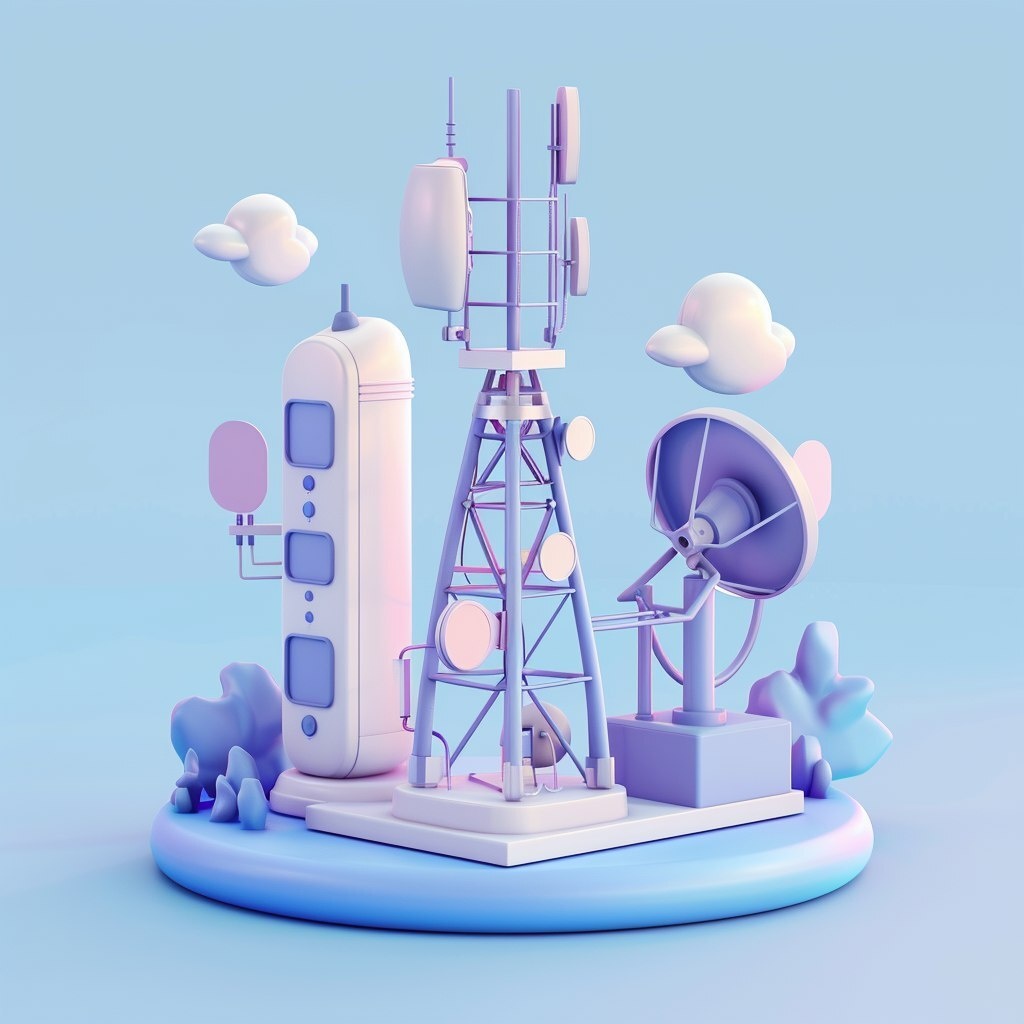 Создано на основе запроса: 3D illustration of a modern telecom scene with a cellular tower, satellite dish, fiber optic cables, and network signal icons. Minimal flat 3D style with soft rounded shapes, clean composition, and smooth surfaces. Set against a soft gradient background in cool tones like light blue or lavender, optimized for professional web or UI design --- Автоперевод: 3D иллюстрация современной телекоммуникационной сцены с сотовой башней, спутниковой блюдой, волоконно -оптическими кабелями и значками сети. Неплохо получилось? 🤔 https://dzen.ru/id/65c0c65c86e4f837c27b24d7 #ИИ #AI #нейросеть #midjourney #art