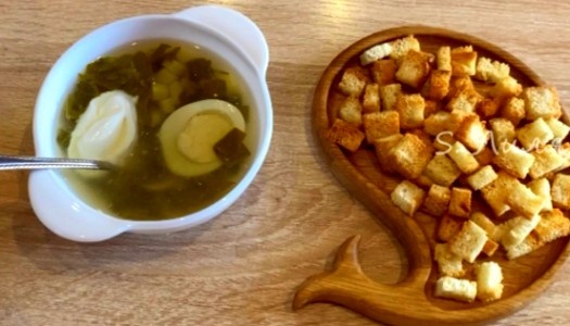 Всем доброго дня. Суп со щавелем это как борщ или уха. У каждой хозяйки свой рецепт. Можно варить на мясном бульоне, на курином, с колбаской или сосисками, с беконом. Кто-то добавляет в кипящий бульон сырое яйцо, кто-то вареное уже в готовый суп. Так что ВЫБИРАТЬ ВАМ. Я тоже варю по разному, но больше всего люблю этот суп без мяса. Люблю этот суп горячим, люблю холодным особенно в жару. Если его охладить, отличная замена окрошке. Никакого мяса, никакого масла и никакой зажарки. Количество составляющих произвольное, по вкусу. Можно сварить погуще или более жидким, добавить морковь и репчатый лук. Главный вкус супу придает щавель. Сегодня варю суп зеленый: добавляю в него картофель, сухой чеснок, черный перец, зеленый лук и щавель. Видео можно посмотреть здесь: В готовый суп кладу половинку вареного яйца и ложку сметаны, добавить сухариков всем ПРИЯТНОГО!