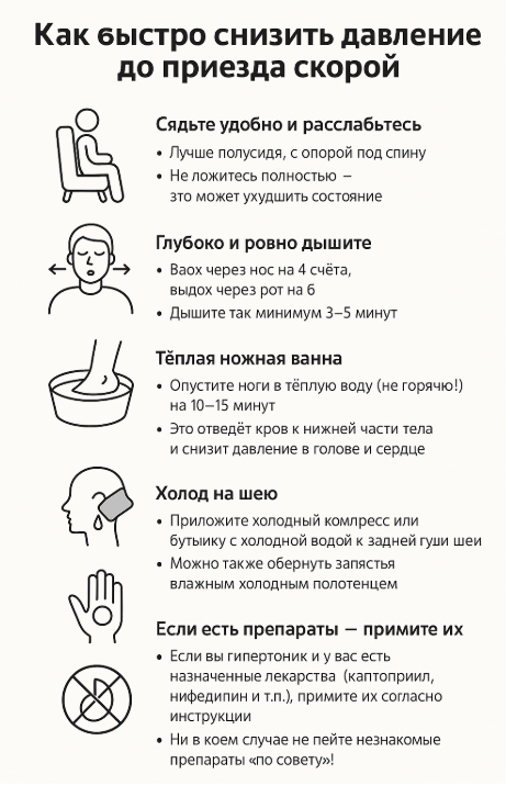 ⚠️ Если давление выше 160/100 и вы плохо себя чувствуете: