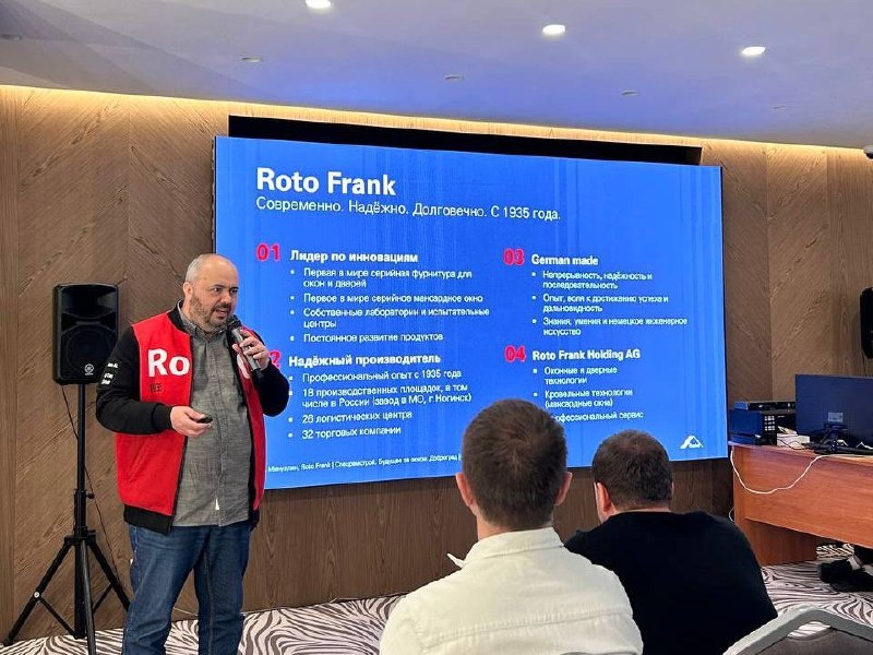 erid: 2SDnjc5hhPB РОТО ФРАНК – партнер конференции «Будущее за окном» в Доброграде С 21 по 22 апреля в г. Доброград во Владимирской области прошла конференция, посвящённая ИЖС, от «Спецремстрой», «РОТО ФРАНК» и VEKA. Фокус участников был направлен на тренды частного домостроения, роль современных оконных решений и развитие комфортной среды. Бизнес-часть мероприятия «Отраслевой разговор» была отведена на конструктивное обсуждение актуальных отраслевых тем и острых вопросов, которые волнуют строителей здесь и сейчас. Что обсудили? • Тренды и тенденции оконного рынка; • ГОСТы, гарантии, обслуживание; • Продуктовые решения, созданные для рынка ИЖС, и эволюция этих решений. Лев Минуллин, руководитель проекта «Малоэтажное домостроение» в «РОТО ФРАНК», выступил спикером с темой «Эволюция рынка СПК» и осветил наглядные изменения. Компания «РОТО ФРАНК» считает важным поддерживать новые инициативы в отрасли индивидуального жилищного строительства и активно принимает участие в мероприятия
