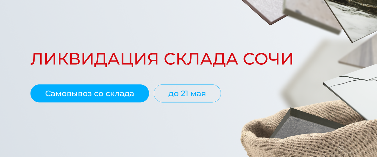 Уважаемые клиенты! Сообщаем о начале полной ликвидации остатков на нашем складе в Сочи. До 21 мая у вас есть уникальная возможность приобрести продукцию по сниженным остаточным ценам. Адрес склада для самовывоза: г. Сочи, ул. Труда 33, склад 23 Все товары отпускаются со значительными скидками — предложение действительно только до окончания остатков. Обращаем ваше внимание, что продукция доступна исключительно по самовывозу. 📞 Для уточнения наличия и деталей — свяжитесь с нашим менеджером по телефону или через форму обратной связи на сайте. Спешите — предложение ограничено сроками и количеством! По всем вопросам обращайтесь 👇 📞 8 (800) 775-40-78 🌐 keramopro-opt.ru 📧 zakaz@keramopro-opt.ru
