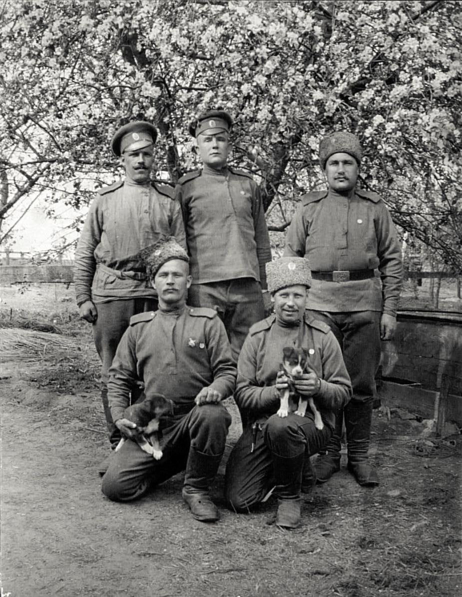 Солдаты лейб-гвардии Московского полка c щенками, 1915 год