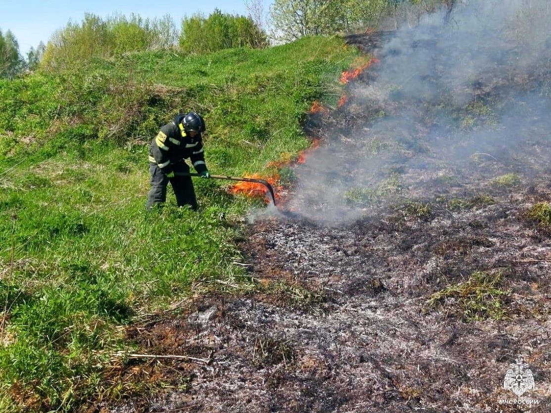 Смоляне продолжают жечь сухую траву, а пожарные тушить