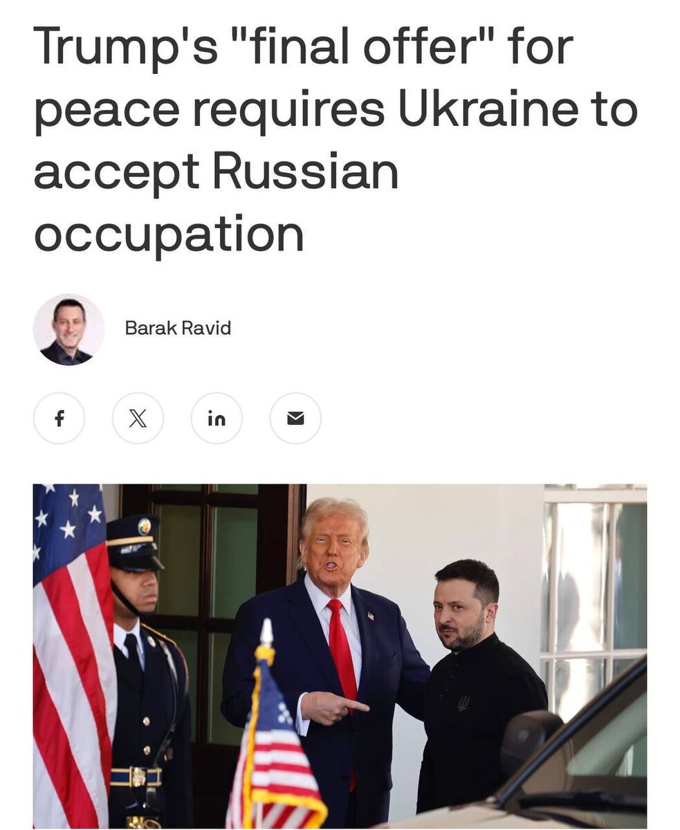 📰 «Последнее предложение Трампа»: США выйдут из переговоров, если стороны не достигнут соглашения в ближайшее время, пишет издание Axios