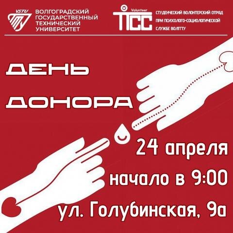 И призывают всех сделать то же самое. Как сообщили РИАЦ в пресс-службе Волгоградского государственного технического университета, в ВолгГТУ продолжается проект корпоративного донорства «Живая кровь». Очередная акция состоится 24 апреля, в 09.00, и будет приурочена к Национальному дню донора, который отмечался накануне, 20 апреля. - Каждые три секунды кто-то в мире нуждается в здоровой крови, и всего 450 миллилитров (именно столько крови отдает донор за одну процедуру) могут спасти целых три жизни, - говорят добровольцы, которые уверены, что донорство – самый доступный и безопасный способ творить благие дела. И призывают это делать в веселой компании опытных волонтеров и новичков. Присоединиться к активистам предлагается по ссылке или связавшись к координаторами проекта. Либо просто прийти в ГБУЗ «Волгоградский областной центр крови», расположенный по адресу: ул. Голубинская, 9а.