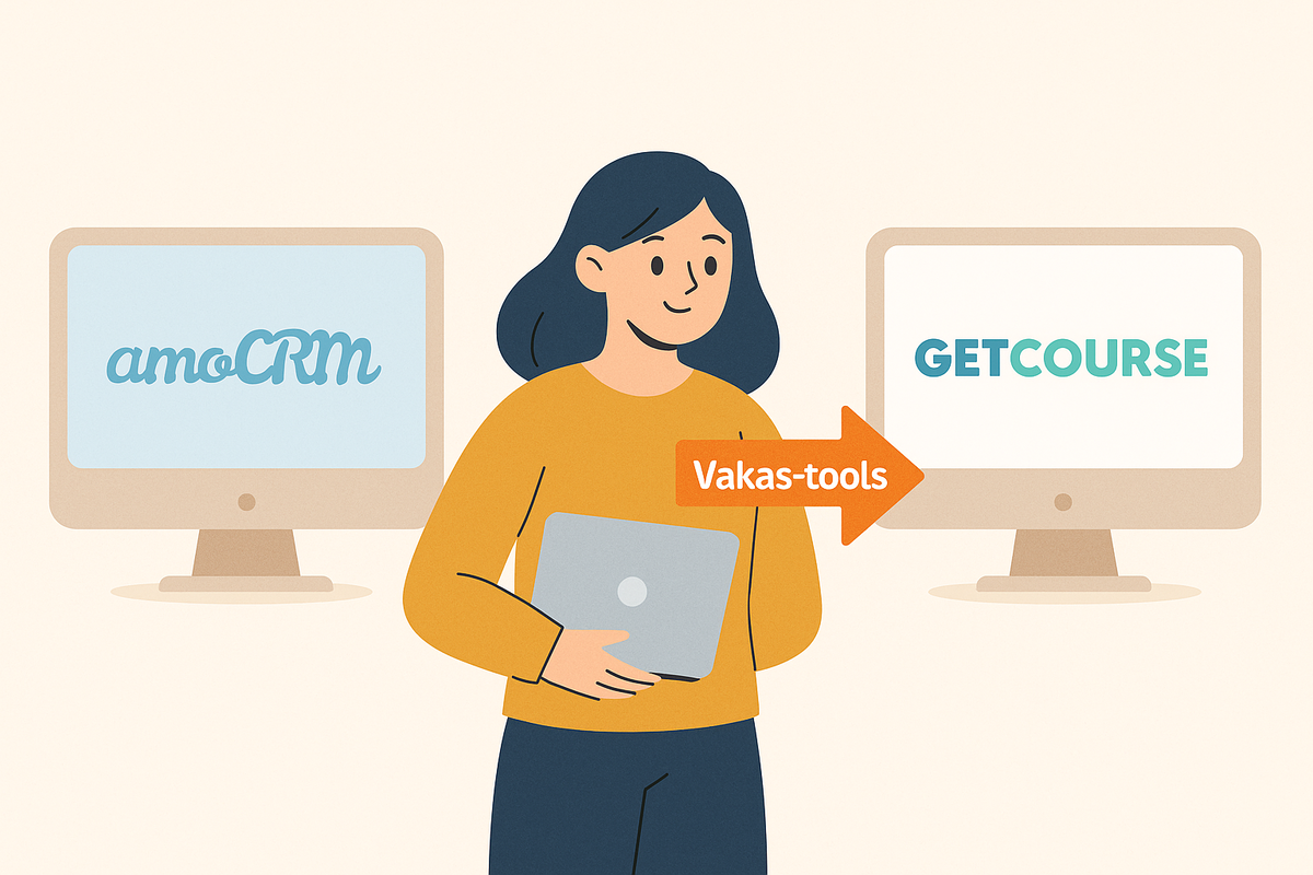 Чтобы связать amoCRM и GetCourse, нужны API, понимание логики процессов и инструменты, которые умеют работать между системами. Один из самых удобных вариантов — Vakas-tools.
