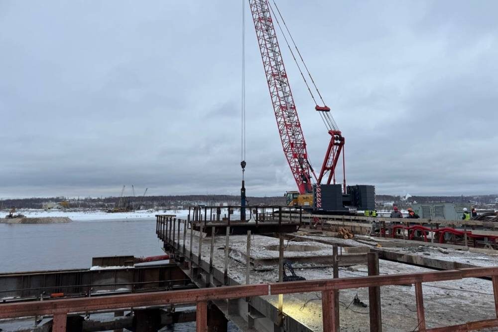 Строители готовятся к монтажу основной арки моста через Каму в Перми