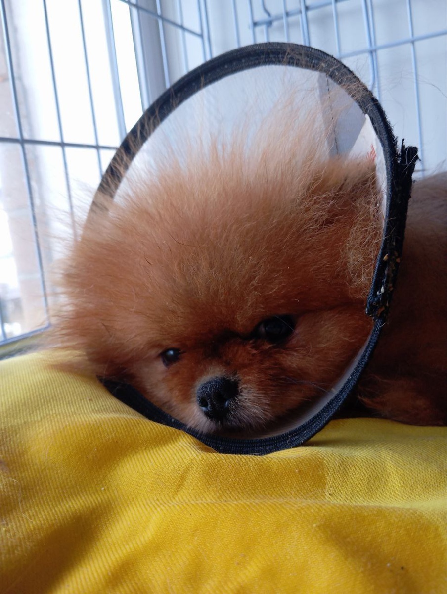 Грустненькая, но кушает хорошо. Хотя врач предупреждал, что возможно нужны будут капельницы. Была большая потеря крови.