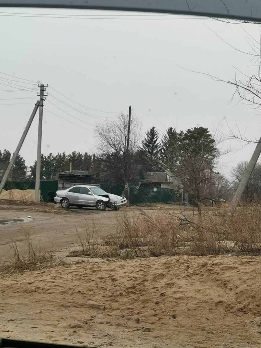На пересечении улиц Интернациональная и Советская стоит автомобиль с следами серьезного происшествия. Кого-либо ни в машине, ни рядом - нет.