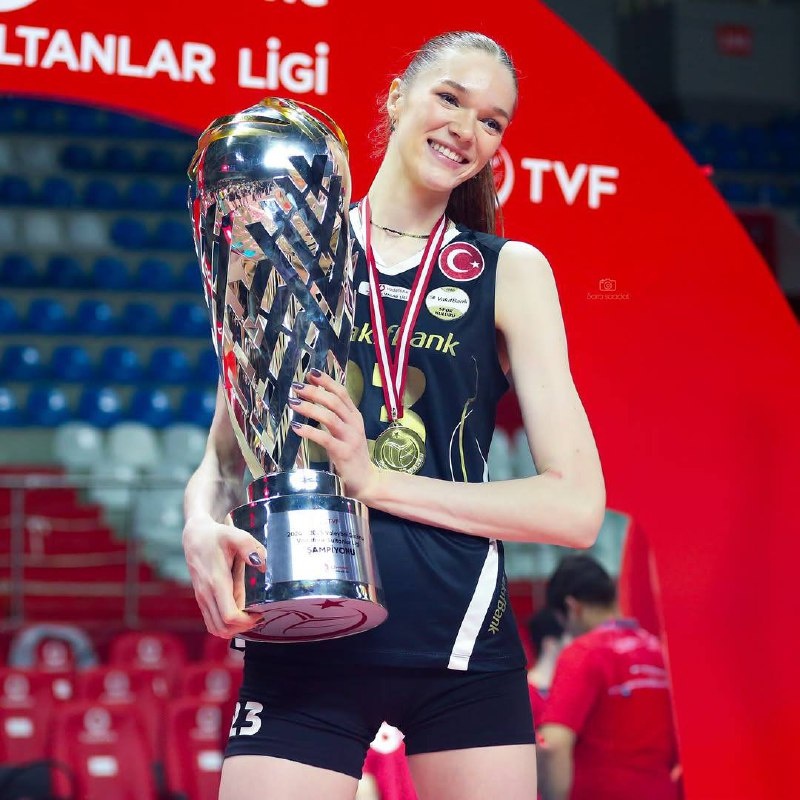 Марина Маркова выложила в свои социальные сети фото с кубком Лиги Сулнатлар. Вчера её «Вакыфбанк» стал победителем турнира.