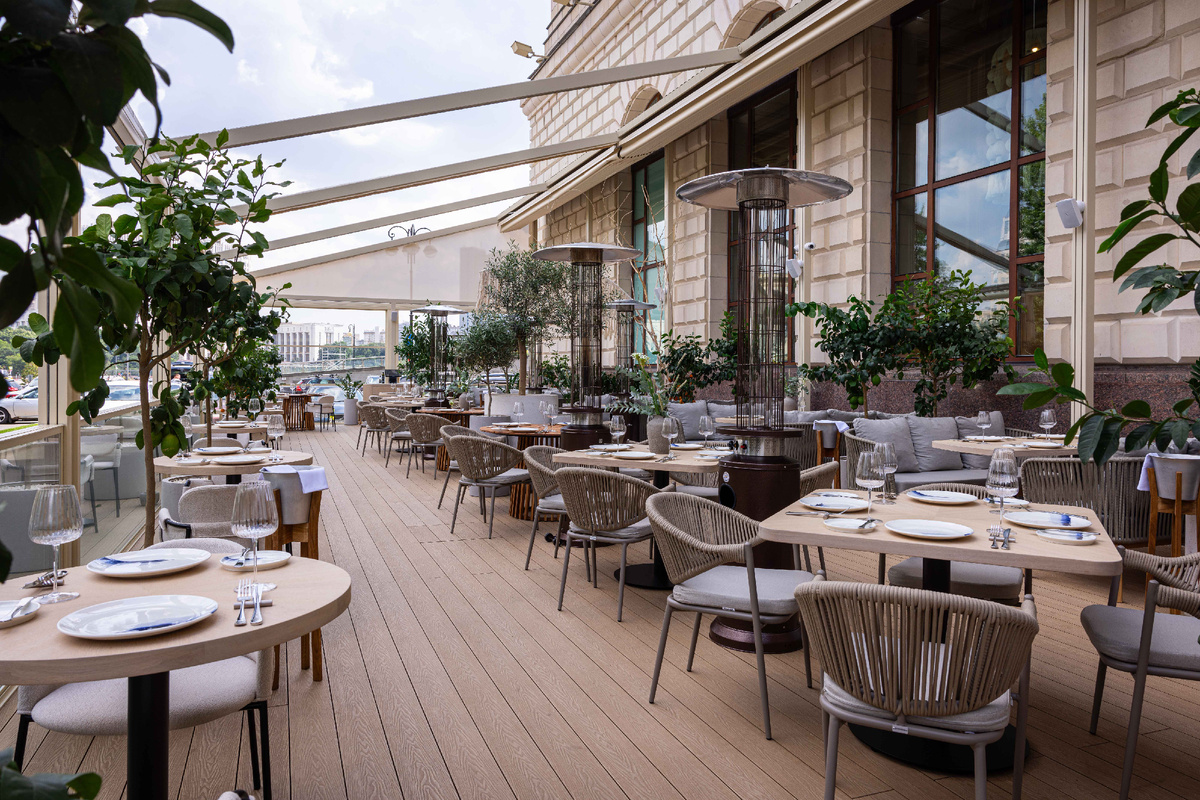 Летняя терраса ресторана Atlantica создана для того, чтобы проводить лето в городе с максимальным комфортом. Она выполнена с той же основательностью и элегантностью, что и главный зал.