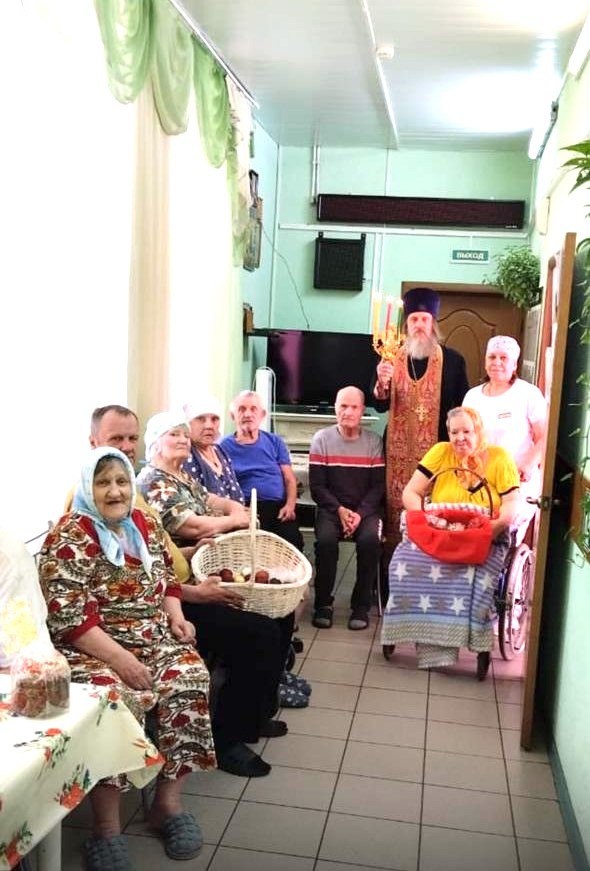 Пасха на приходе Успенского храма села Липитино 20 апреля ответственный Епархиального отдела по работе с медицинскими учреждениями в Малинском благочинии, настоятель Успенского храма села Липитино протоиерей Вячеслав Агуреев посетил дом-интернат малой вместимости для граждан пожилого возраста и инвалидов № 1 Ступинского комплексного центра социального обслуживания населения. В ходе посещения отец Вячеслав отслужил праздничный молебен, поздравил медицинский персонал и проживающих в интернате, вручил в куличи и крашеные яйца. #Липитино #протоиерей_Вячеслав_Агуреев https://clck.ru/3LbySD