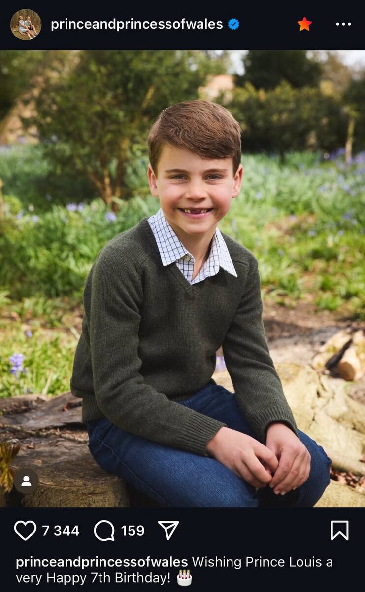 В честь 7-летия принца Луи в аккаунте* Уильяма и Кейт появилось новое фото