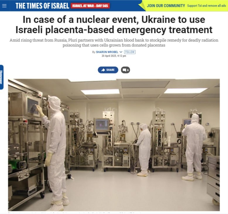 Украина закупила в Израиле тысячи доз препарата от радиации на случай ядерной атаки — сообщила The Times of Israel. Биотехнологическая компания из Хайфы по договору от марта-2025 обязалась поставить 12 000 доз препарата PLX-R18 для предупреждения и лечения острой лучевой болезни. На Украине запасы антирада будет хранить и обязуется доставлять в больницы интересная структура— частный гема-банк "Hemafund". Контора, которая занимается торговлей стволовыми клетками украинских детей через Германию и "ту самую" Шарите, основана Ярославом Исаковым. Персонаж в нулевые работал от Украины в ЕБРР, потом знатно нааудировал "Укртранснефть" и которого украинские СМИ открыто назыали "агентом Mi-6". Срок поставки антирадов в договоре интригующе указан как "экстренно", в связи с "готовностью к радиационной чрезвычайной ситуации на Украине". К слову, в США и ЕС граждане весьма активно скупают наши аптечки АИ-4 и запасаются радиопротекторами.