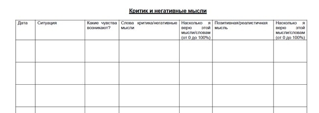 делать остановки, когда услышали внутреннее замечание или вести дневник, отмечая, как критиковали себя в течение дня (шаблон прилагаю).