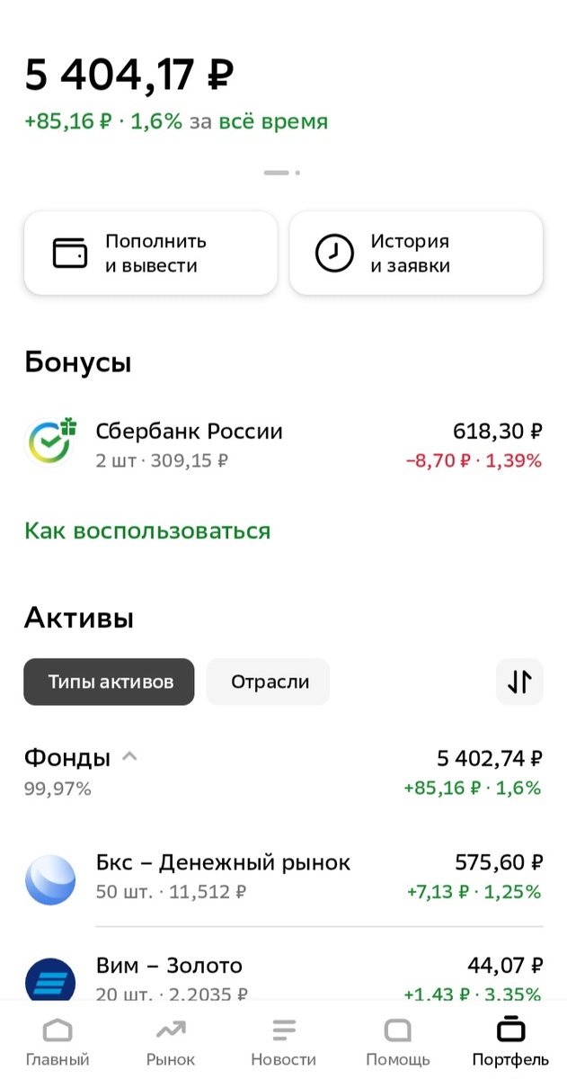 Прошел месяц моих мелких, нищенских инвестиций. В целом, результат относительно неплох. На Сбер, чтобы получить 2 акции Сбера пришлось 5 тыс. завести + копейки. Прирост тут 1.6% на 23.04.2025. На Совкоминвестициях результат прироста скромнее, 0,69% на ту же дату, но тут использую в портфеле и акции и облигации и все те же ПИФЫ (золотые + фонды ликвидности). Акции планирую держать строго 10-15% от всего портфеля (сейчас 13% от общего портфеля и ближайшая их покупка не знаю когда и кого будет и ч каком обьеме) Общий итог: Капитал 9 064 руб. Прирост 110 руб или 1.21% за месяц (или 14,6%) годовых без учета купонов по облигации и возможных копеечных дивидендов по акциям. В планах покупка облигаций (скорее всего М-Видео с фикс купоном 25% или 26% на 2-3 года). Рассматриваю Рольф 26% фикс (пугает ситуация на рынке авто). Думаю посмотреть облигации контор понадежнее, но купон 18-20%, так как ключевая ставка может скоро пойти вниз. Акции планирую: поштучно Сбер, Мосбиржа, Евротранс (можно по од